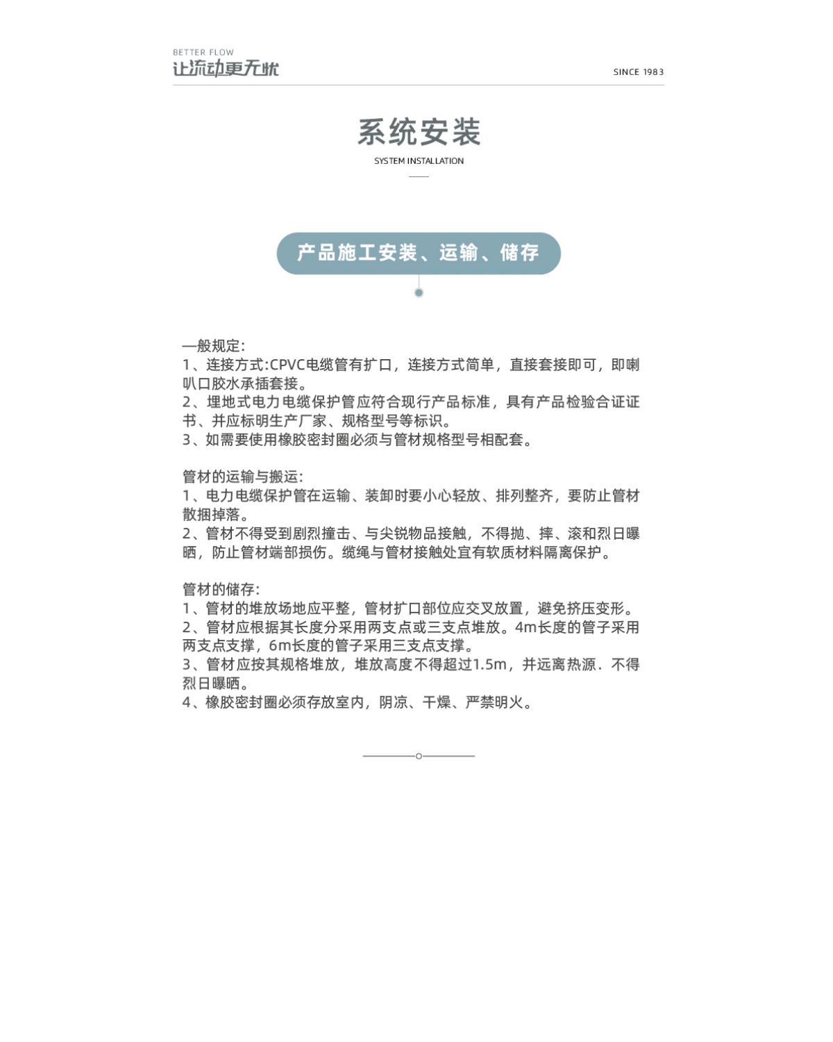 2、電絕緣性能好,耐多種化學介(jiè)質,不受土壤腐蝕影響。使用壽命長(地埋管使用壽命五十年以上),經久耐用,線路運行安全可靠。