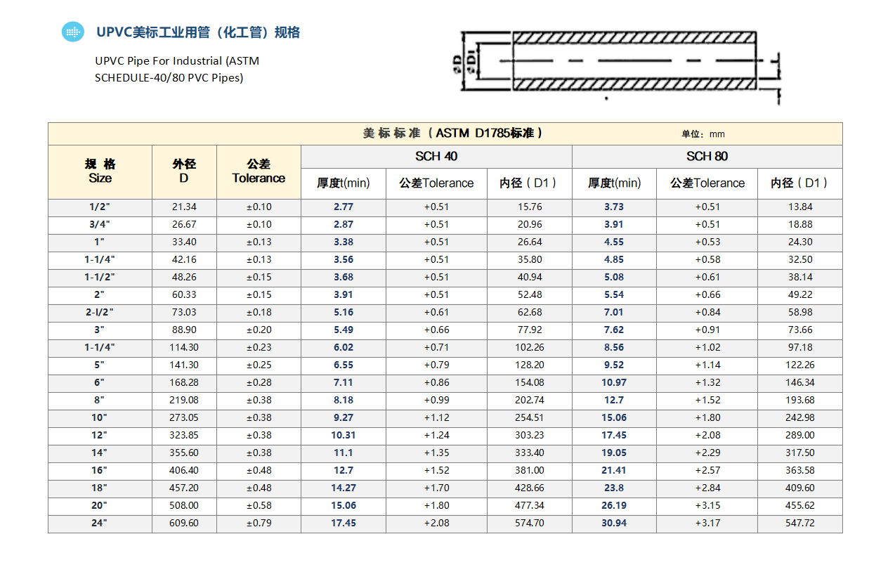 美標(biāo)UPVC 化工管產品用途(ASTM SCH 40/80 )