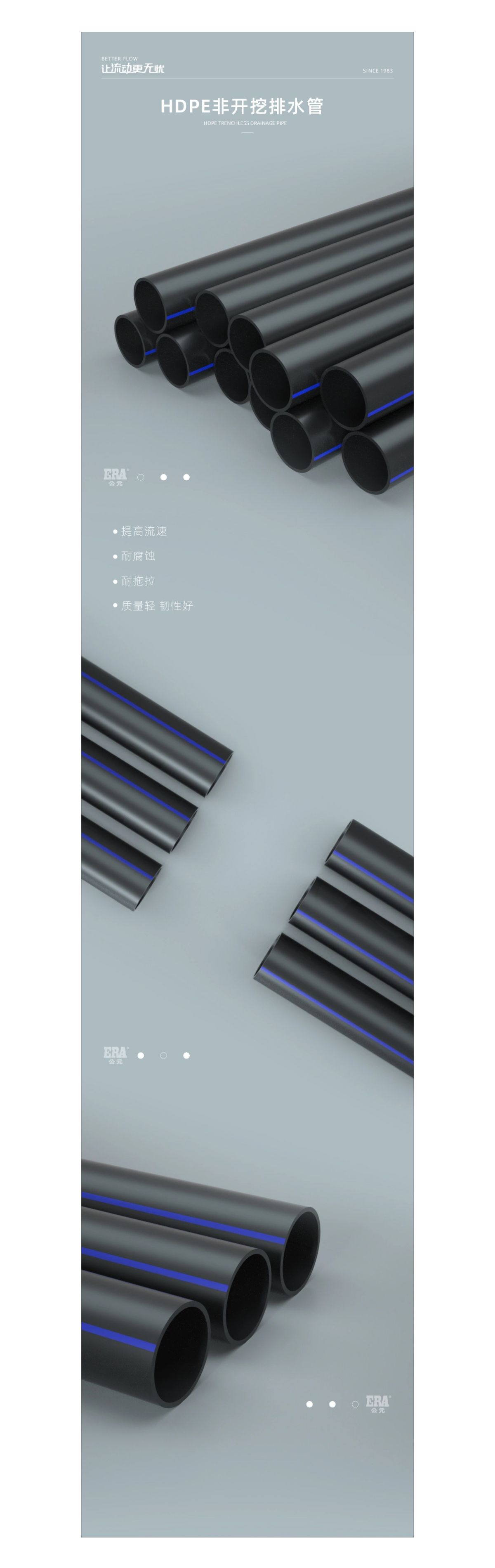 “公元” “永高”HDPE非開挖(wā)排水(shuǐ)管,主要用於(yú)非開挖領域的定向鑽進排水管。HDPE非開挖(wā)排水(shuǐ)管在管材的抗拉強(qiáng)度、彎區強度、韌(rèn)性、剛性以及焊接強度等各方麵都明顯優於其他(tā)管材(cái)。其特(tè)點:具有柔(róu)韌性好、耐(nài)腐蝕性強、質輕、產品內外壁(bì)光滑,管材通過熱熔焊接方式連接,拉伸強度高,抗壓能力強,一次拖拉可(kě)達150米。
