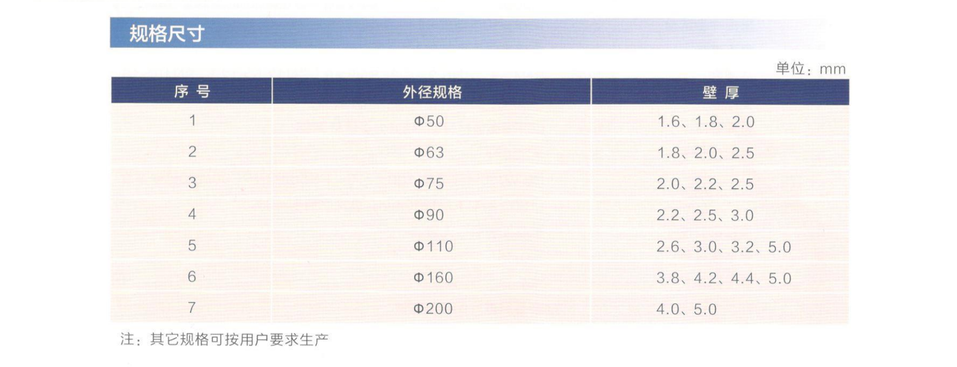 2、PVC通信管產品規(guī)格齊全(quán),外形美觀(guān)。可與不同(tóng)口徑的光(電)纜配(pèi)套,與原(yuán)有水泥管道、波紋管道可以自由過渡、組合、並有相應接頭,專用膠水等配件(jiàn),便於施(shī)工操(cāo)作。